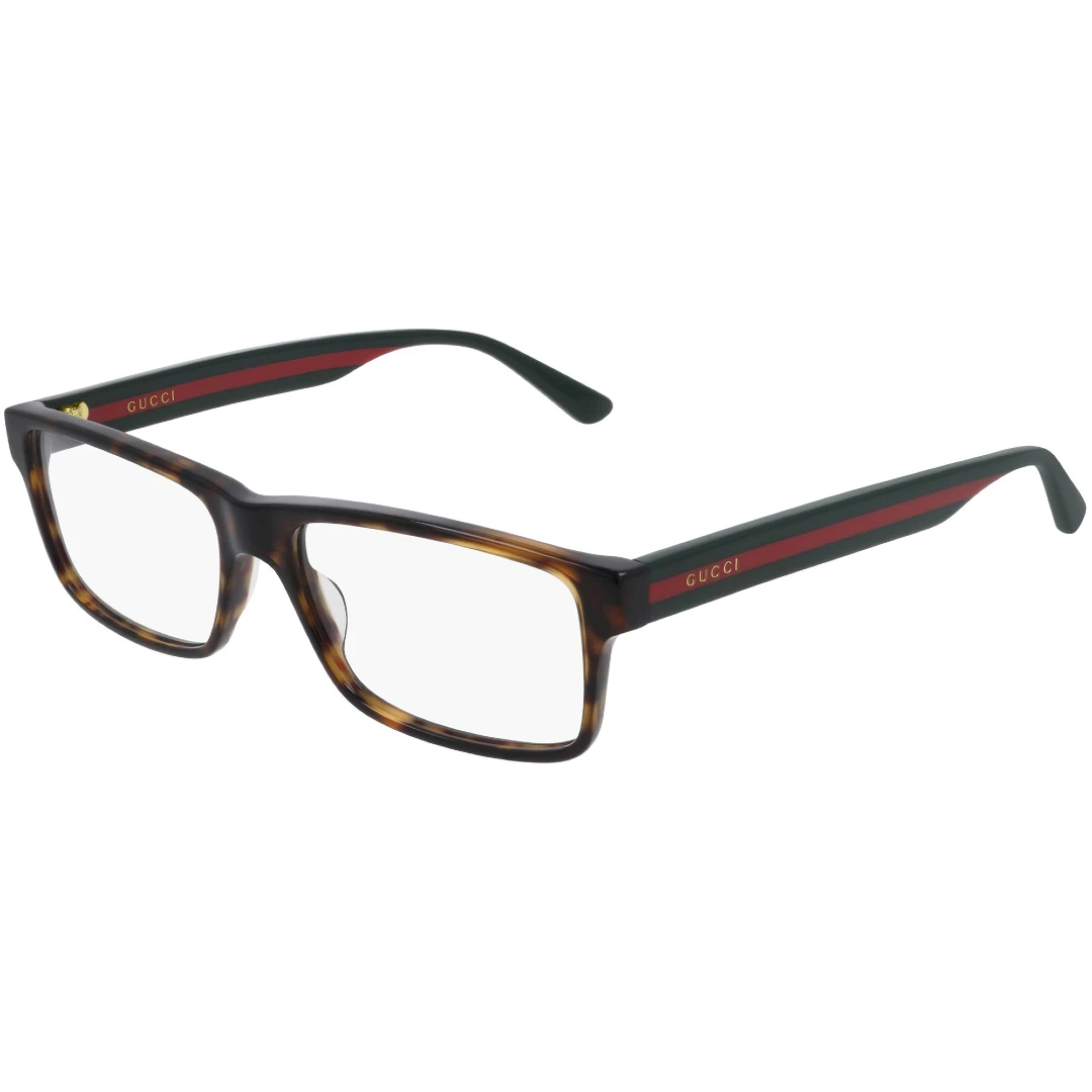 Montatura Gucci unisex con design che si ispira ad un look quotidiano ed arricchito dall’iconico e noto web Gucci. Forma rettangolare e intramontabile in acetato con asta che richiama il noto brand.